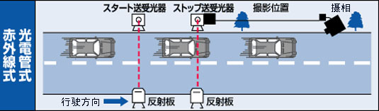 Laser測速系統可分為測速槍以及測速照相系統美規雷射測速槍 LIDAR gun (Laser infrared detectionand ranging) 使用不易散射的雷射紅外線作為測速光源,且在極短的時間以內即可測得車輛的速度。目前 Laser 測速槍以及流動測速系統其最高測速范圍介于 300~480km/h.